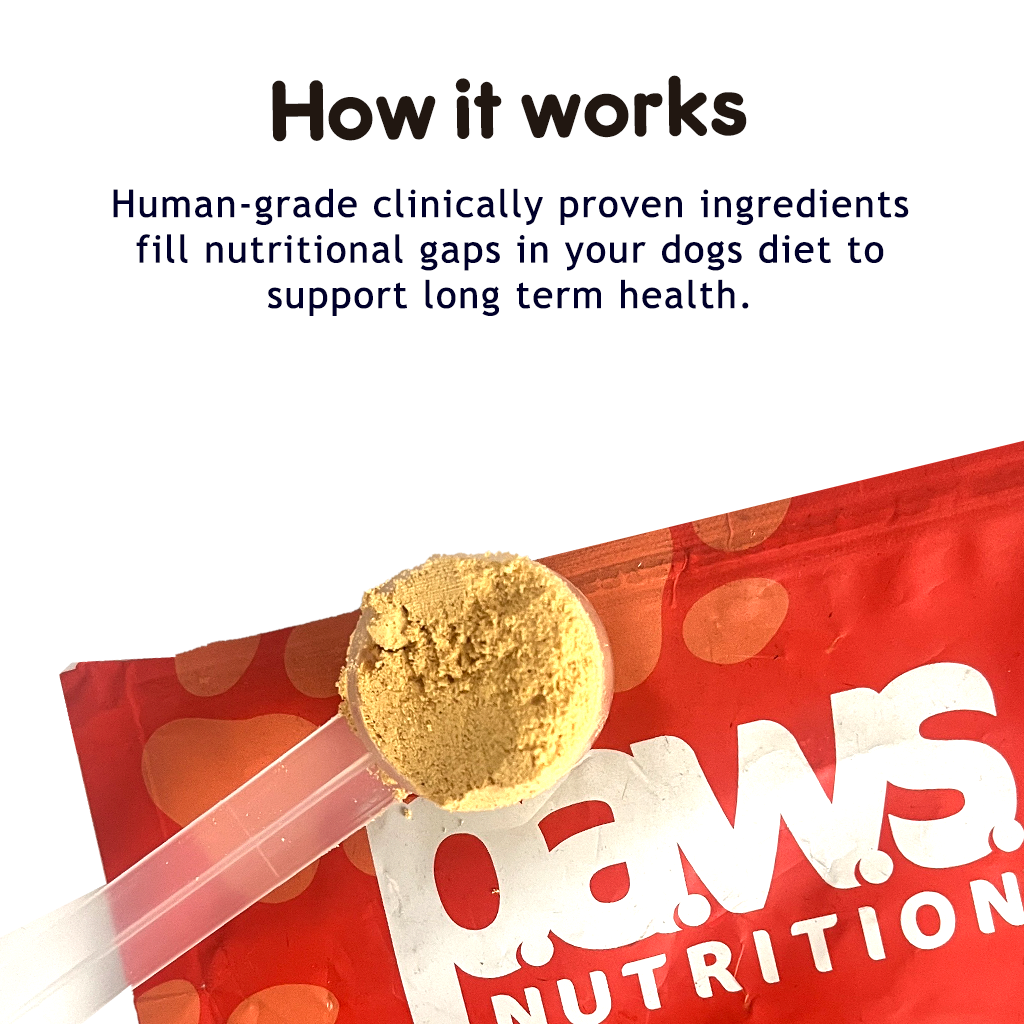 Boost your dog’s daily wellness. Our powerful vitamin blend delivers the right amount of essential nutrients that are missing from our dog’s everyday diets for optimal health & vitality.